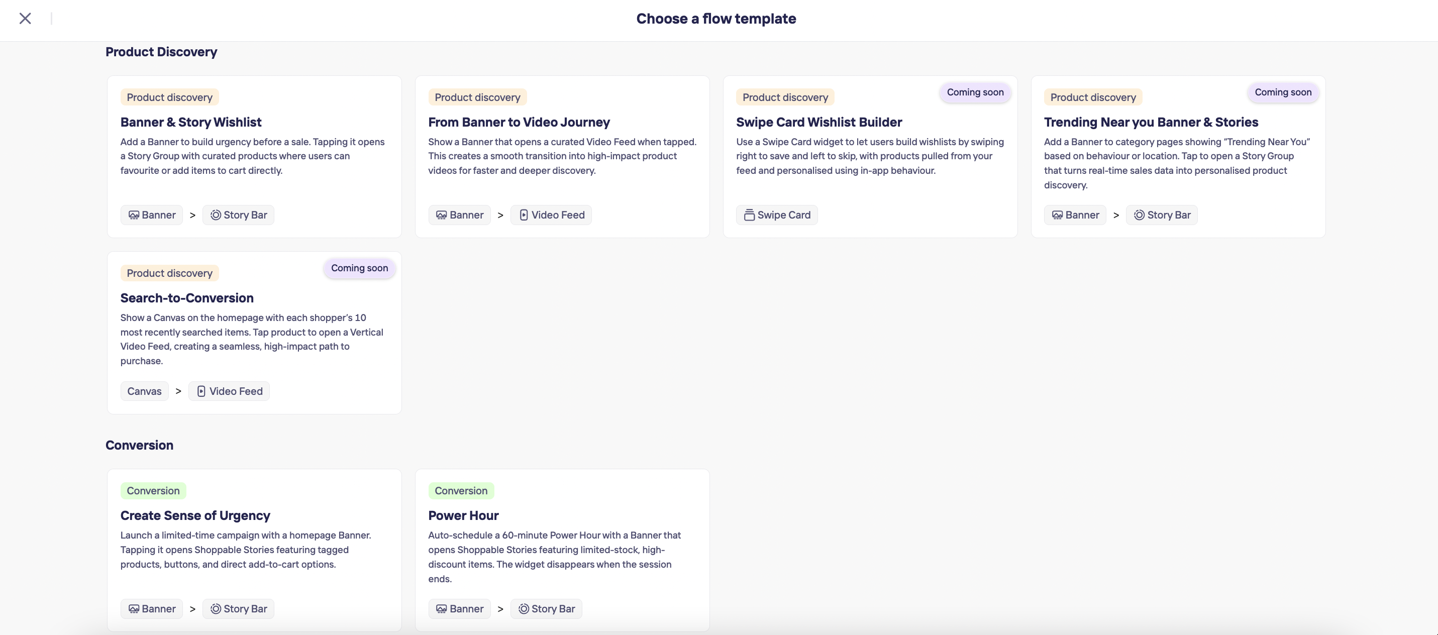 Based on a specific business goal, choose a flow template and the perfect widgets combination.