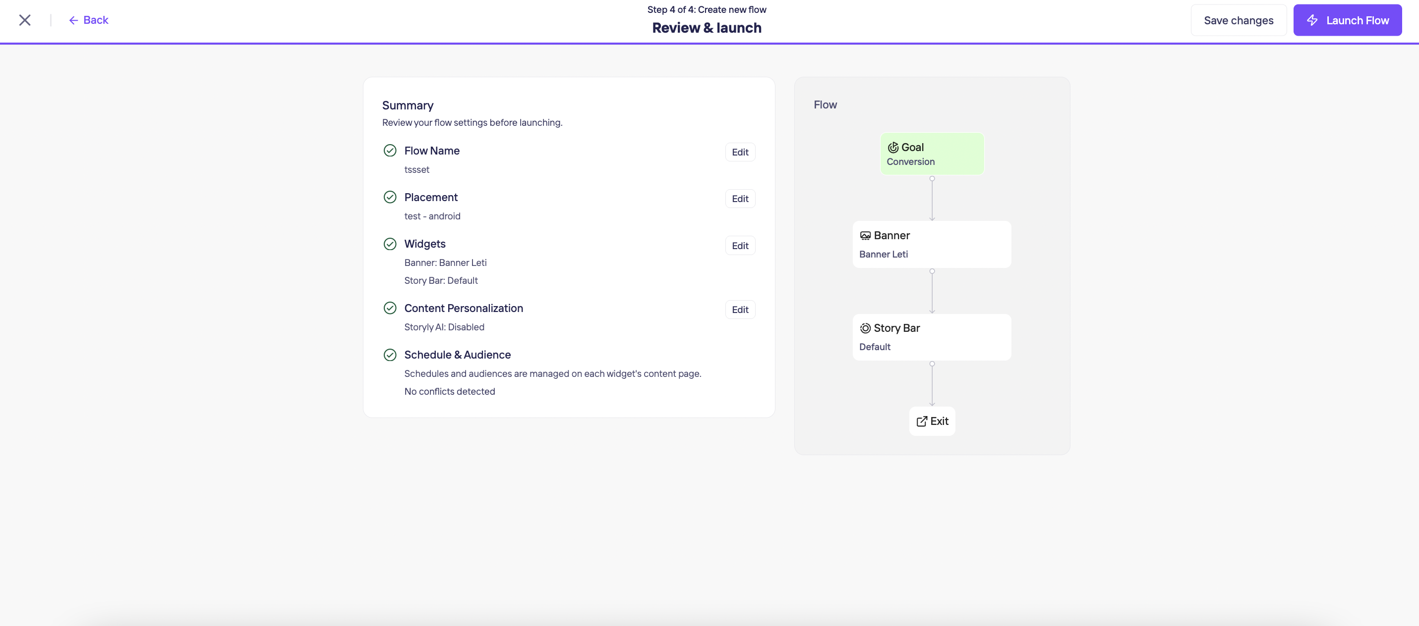 - In this example, our goal is Conversion and we picked the Create Sense of Urgency flow with a Banner connected to a Story Bar.