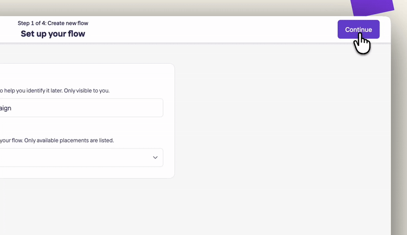 - Give your flow a name to help you identify it later. It's only visible to you. Then, select a placement for your flow. Only available placements are listed.