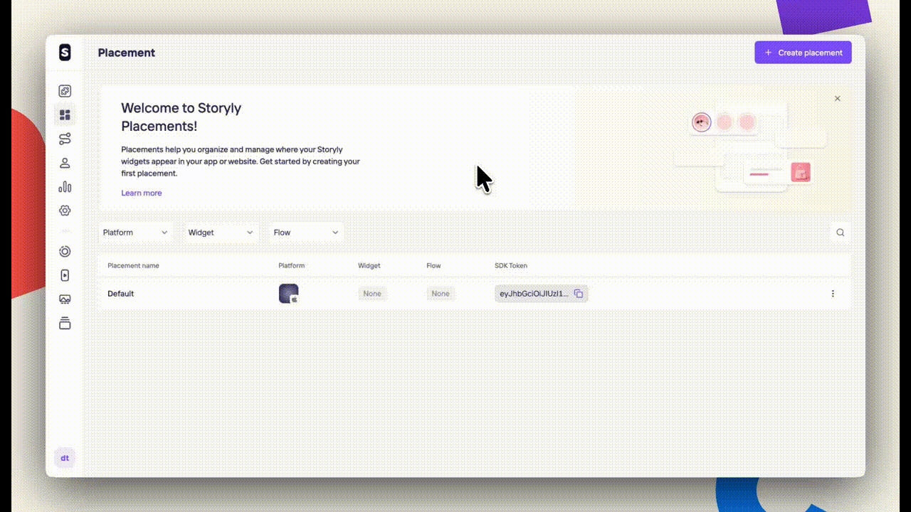 Placement help you organize and manage where your Storyly widgets appear in your app or website (homepage, PDP, category page, etc).
